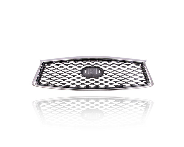 Grille - Compatible/Replacement for '18-20 Infiniti Q50, 18-18 Hybrid - Dark Gray With Chrome Frame & Illuminated Emblem, Without Camera Hole, With Emblem Provision - 623106HH0A