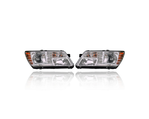 Headlight Assembly - Compatible/Replacement for '09-20 Dodge Journey - Halogen, Chrome Interior Bezel - Pair, Left Driver + Right Passenger Set - 5116288AD, 5116288AD