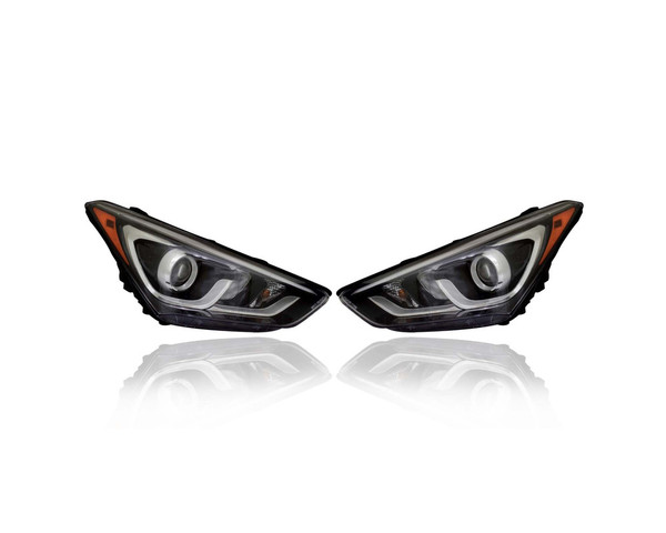 Headlight Assembly - Compatible/Replacement for '17-18 Hyundai Santa Fe Sport Base 2.4/2.0T - Halogen/LED - Pair, Left Driver + Right Passenger Set - 921024Z500, 921014Z500 - CAPA