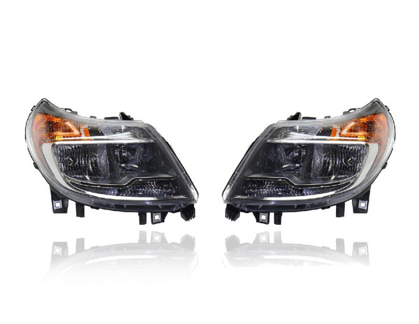 Headlight Assembly - Compatible/Replacement for '14-20 RAM ProMaster Cargo Van - Without Daytime-Running-Lamp - Pair, Left Driver + Right Passenger Set - 4725944AJ, 4725945AJ